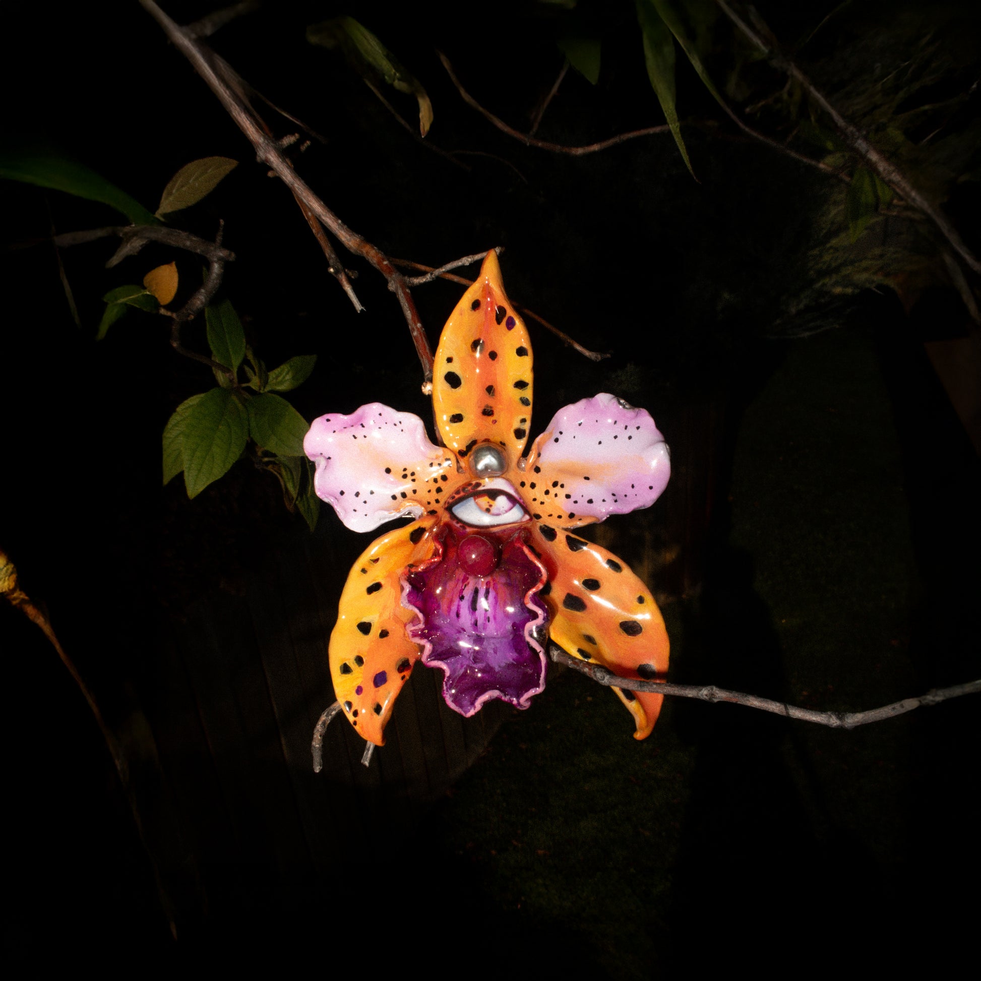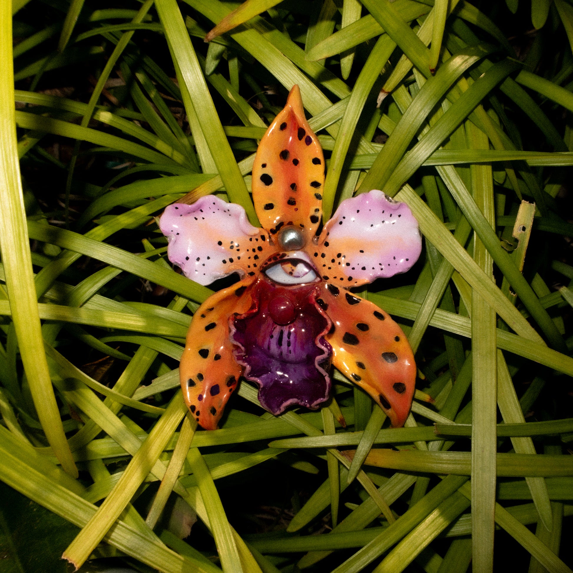Each orchid is sculpted by hand from clay and painted layer by layer to capture its natural detail. The center of every flower holds my signature eye charm, a symbol of protection, and some designs are adorned with glass and pearls to enhance their earthy, organic look. Every piece is finished with resin for a smooth, glossy shine.