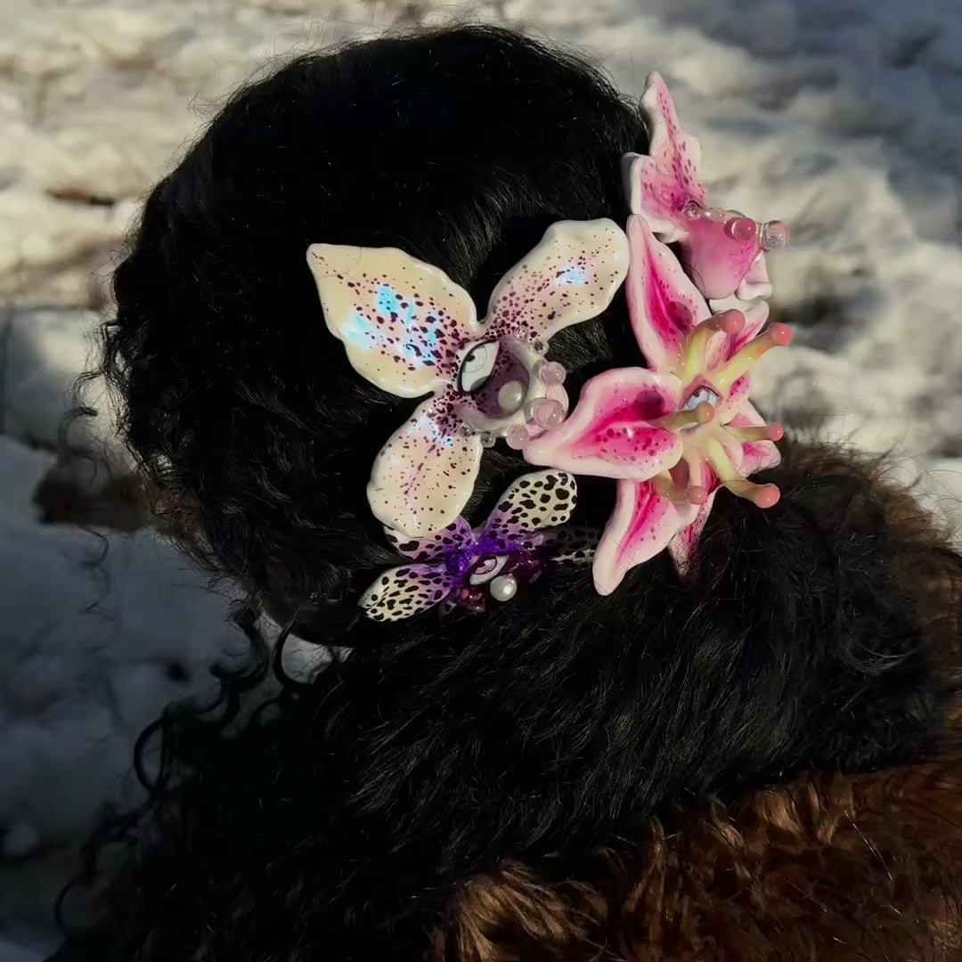 HAND-SCULPTED ORCHID HAIR ACCESSORY